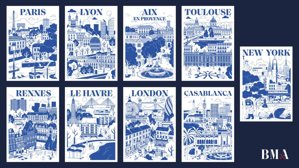 To celebrate these occasions, we asked the talented illustrator, Matthieu Nivesse, to create an illustration of each of the cities where we have an office, a hub.