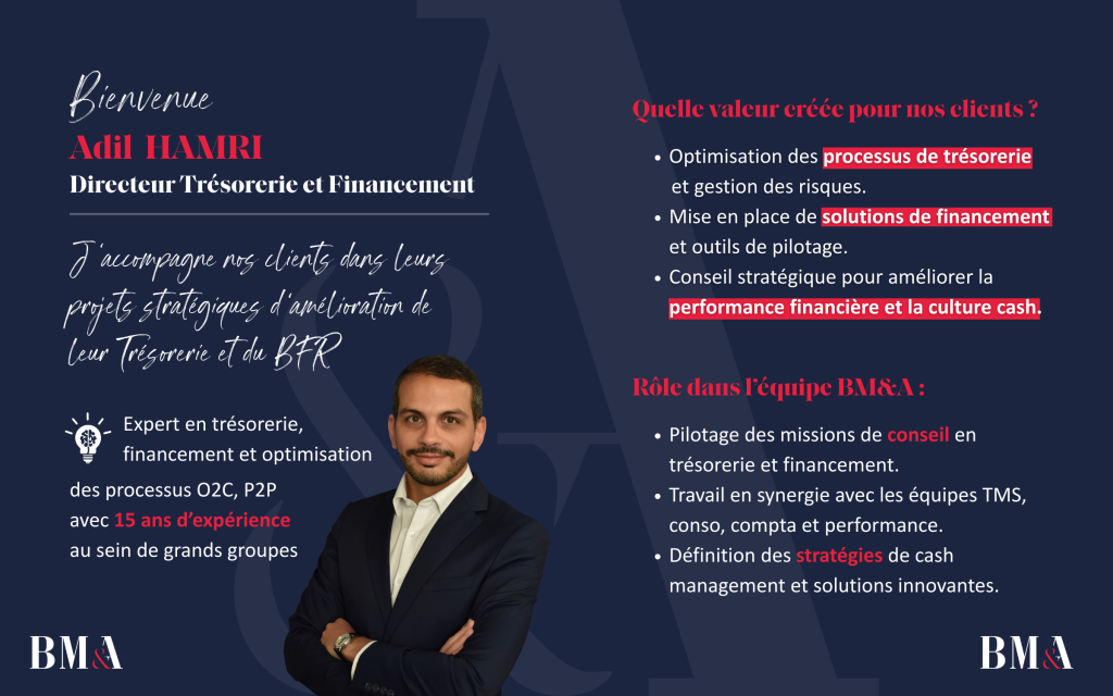 BM&A renforce son activité Trésorerie et Financement avec l’arrivée d’Adil Hamri en tant que Directeur exécutif.